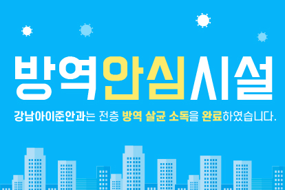 강남아이준안과는 방역안심시설로 본원 전층을 방역 살균 소독을 완료하였습니다. 안심하시고 내원하셔…